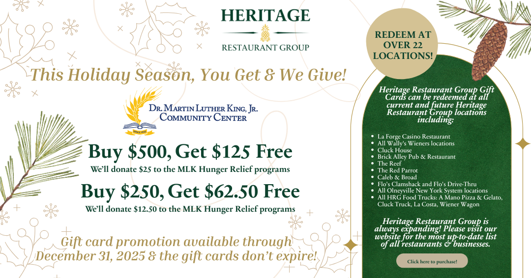 Rooted in the Rhode Island community, Heritage Hospitality Group brings people together through a diverse collection of restaurants, food trucks, and unique local venues. Our dedicated team of hospitality professionals is passionate about delivering exceptional food, personalized service, and memorable experiences that celebrate connection and community.